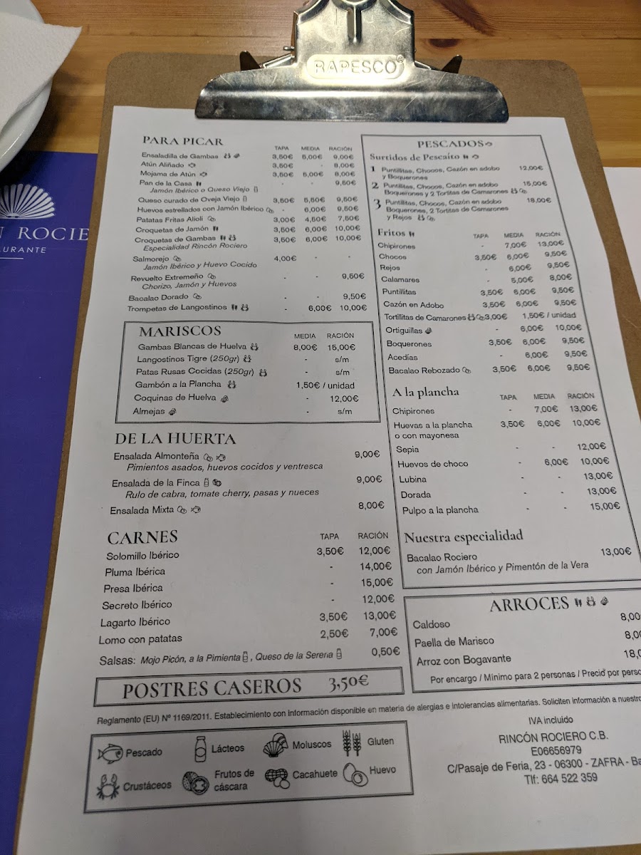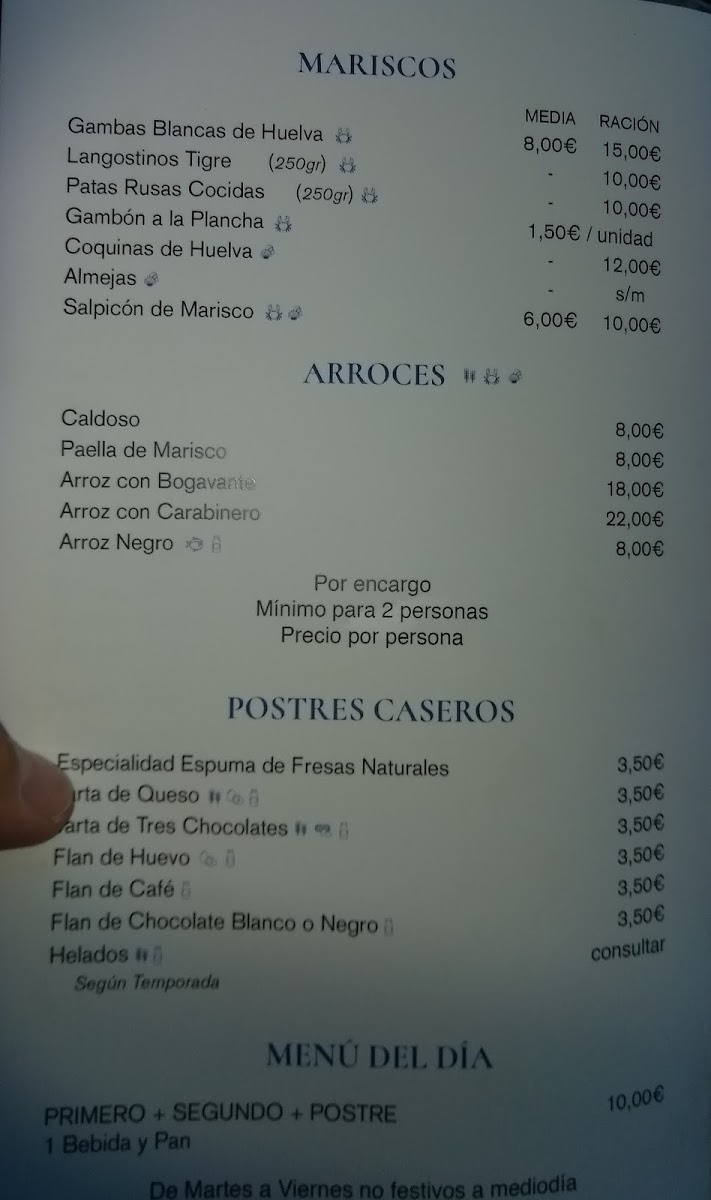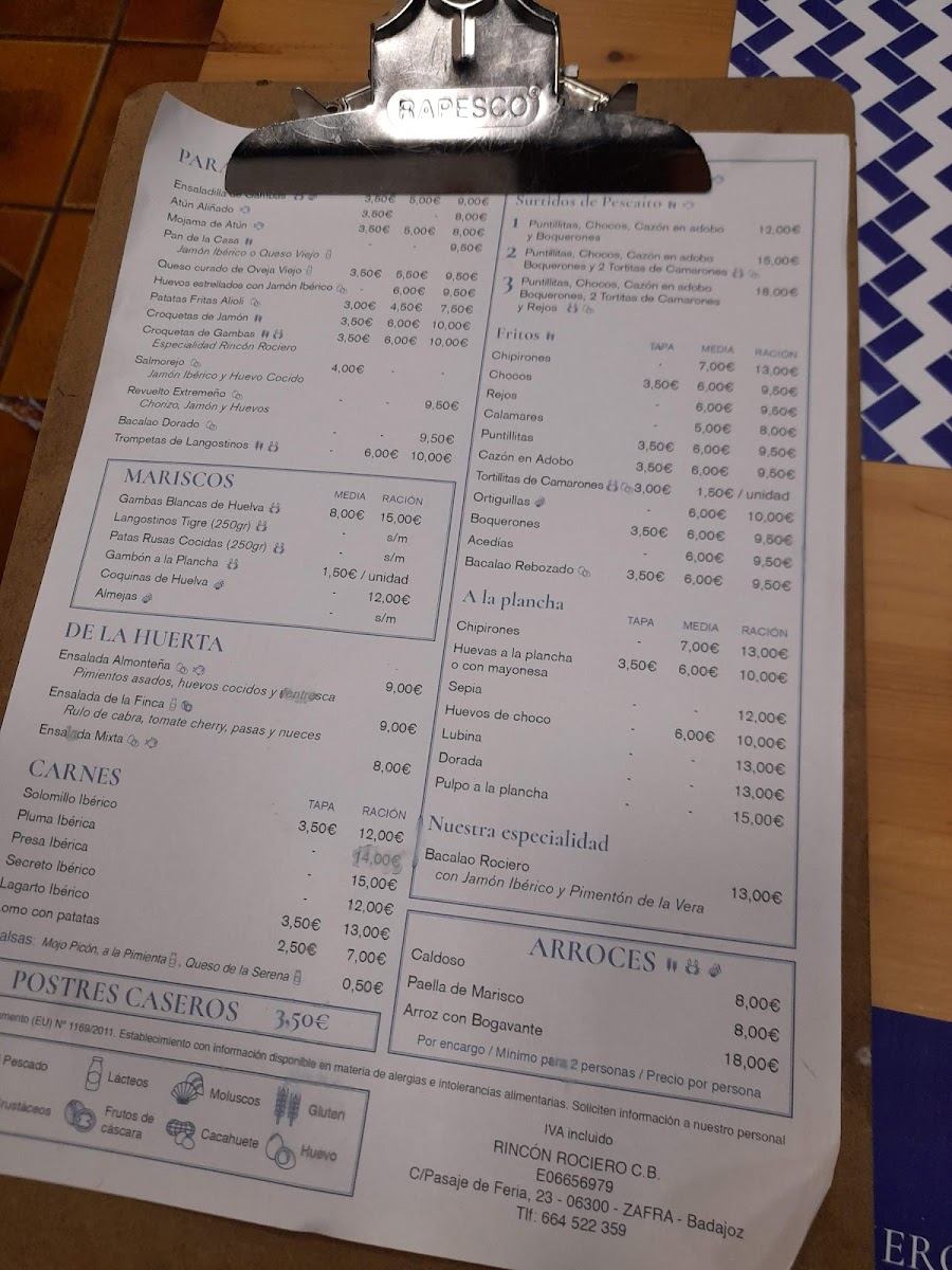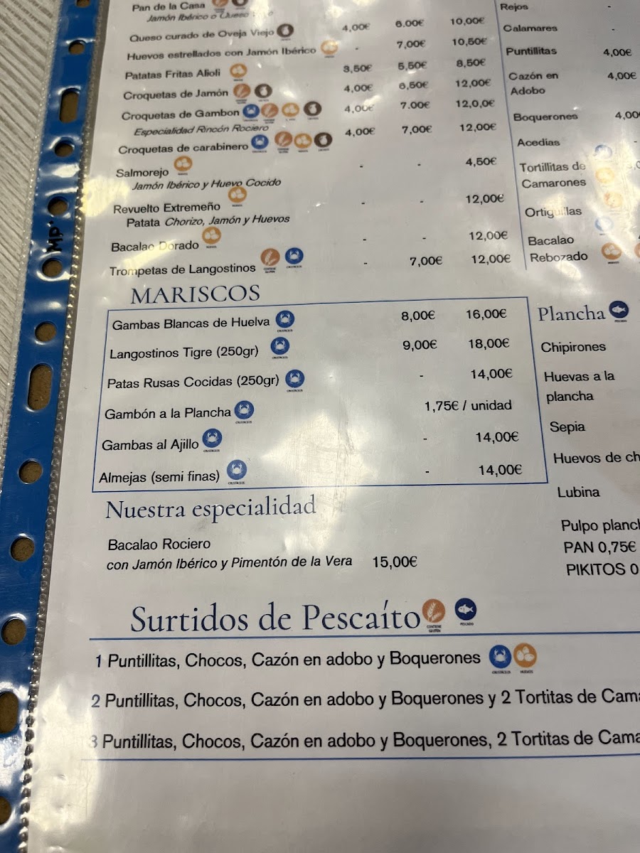 Rincón Rociero’s menu is a celebration of classic Spanish flavors with a refined touch, offering a selection that balances seafood, meats, and traditional tapas. The seafood offerings are particularly striking, with Surtido de Pescado showcasing a variety of fresh catches, and the delicate Chipirones perfectly tender. The Gambas Blancas de Huelva and Coquinas highlight the region’s bounty, while Almejas A la Marinera and Buey de Mar bring rich, briny depth to the table. For lighter bites, Rejos Fritos, Media de Calamares A la Romana, and Media Ración de Croquetas de Gambas are crisp, flavorful, and ideal for sharing. Meat dishes are equally impressive, with the succulent Solomillo Iberico delivering a melt-in-the-mouth experience, complemented by the comforting Huevos Revueltos Con Jamón Y Patatas. Small yet vibrant plates like Trompetas de Langostinos and Gambas A la Plancha offer clean, intense flavors that highlight the quality of the ingredients. Overall, the menu at Rincón Rociero provides a well-curated journey through traditional Spanish cuisine, blending rich textures, fresh seafood, and expertly prepared meats in a way that leaves a lasting impression on the palate.